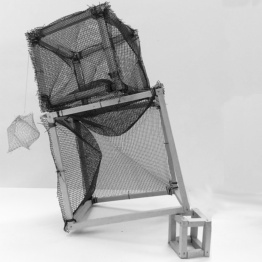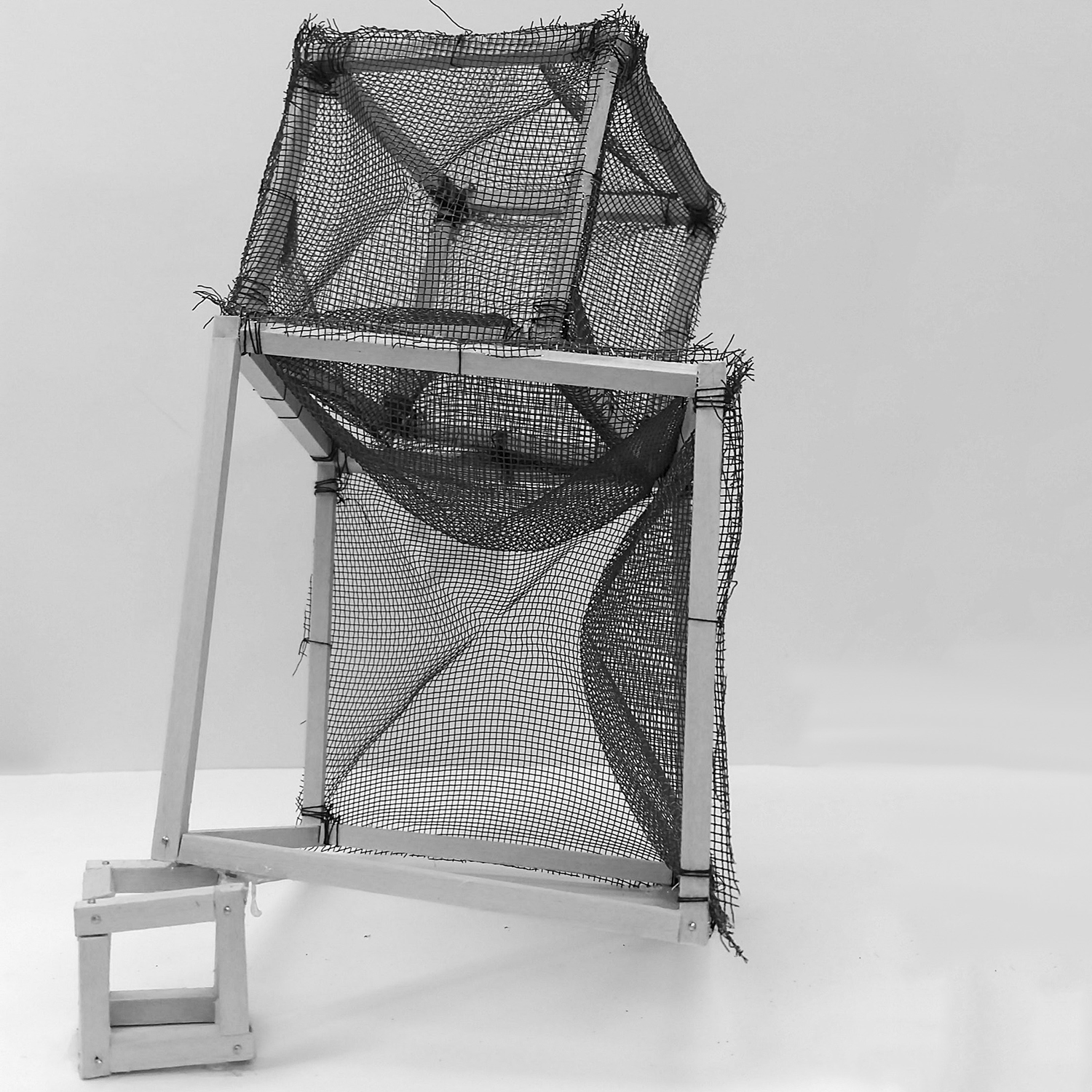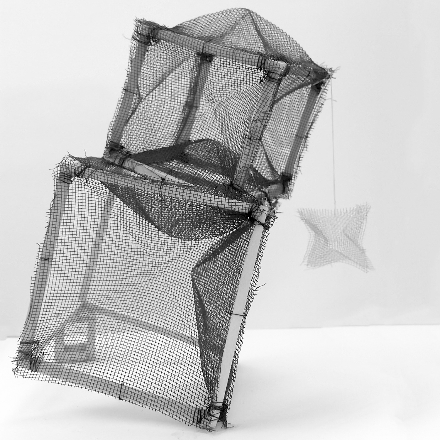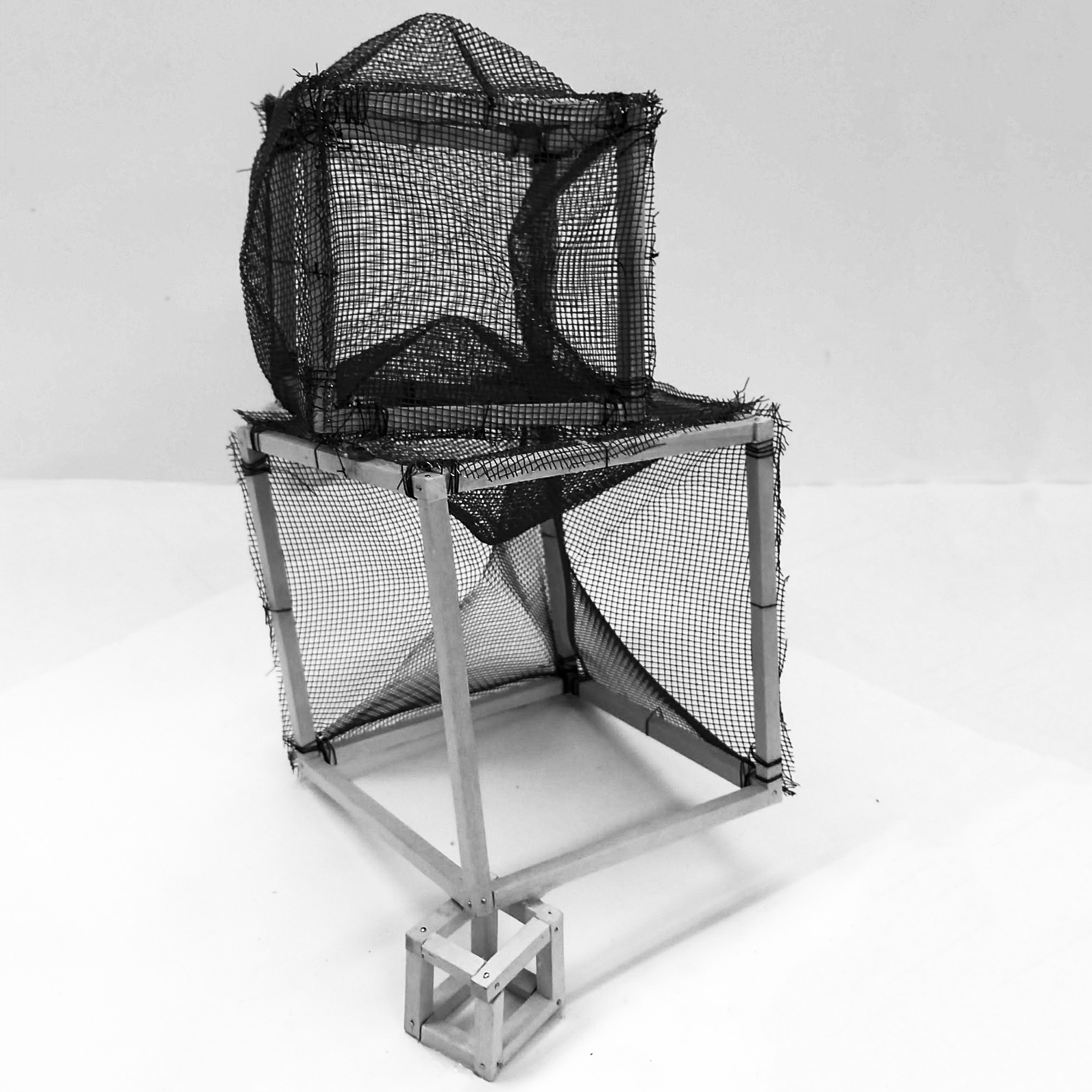 constructed entirely without glue, this project explored various attachment methods including pins as nails, thread, and the use of stiff materials to simplify attachment.