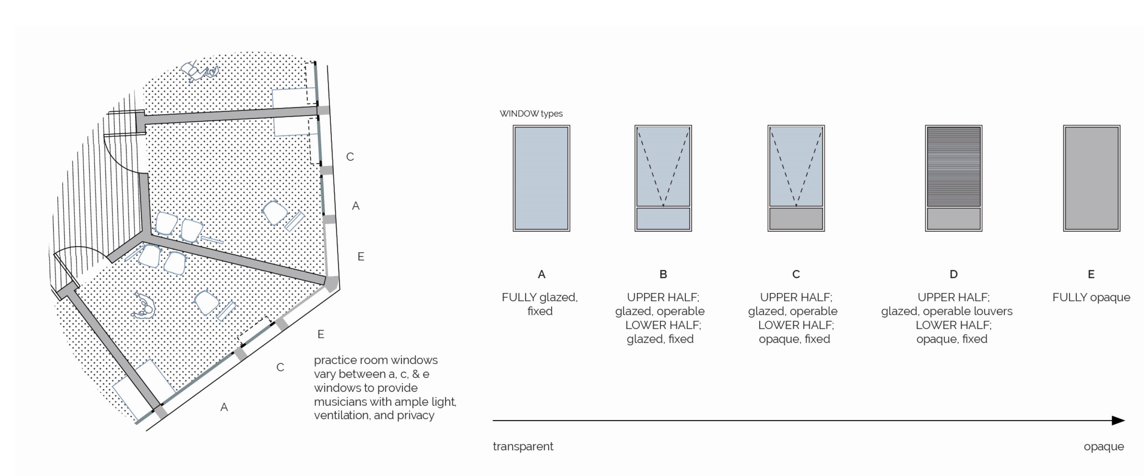a dynamic staircase links five floors filled with practice and rehearsal rooms, offices, a library, and a café. glazing on both sides of the staircase creates a light-filled circulation spine, connecting the two volumes of the building across the courtyard.